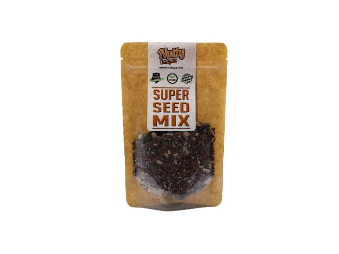 This super seed mix contains sunflower seeds, pumpkin seeds, chia seeds and flax seeds - providing a whole range of nutritional benefits. You will find large amounts of essential minerals and especially mono and polyunsaturated fats.