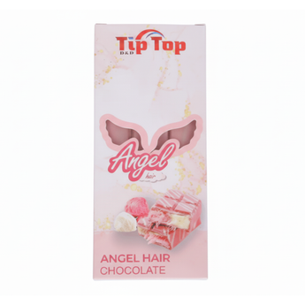 Angel White Chocolate is a soft white chocolate bar filled with creamy pistachio and a fun surprise inside, Pişmaniye, a Turkish-style cotton candy that looks like tiny strands of hair (that’s where it gets its name!).